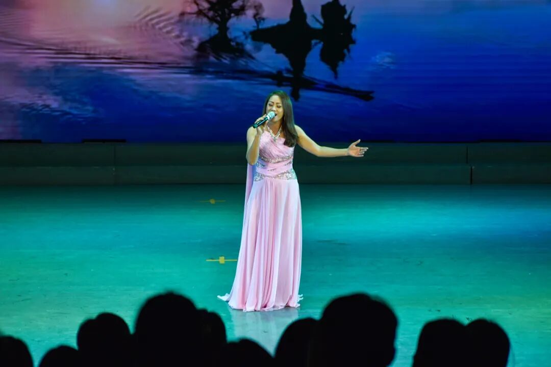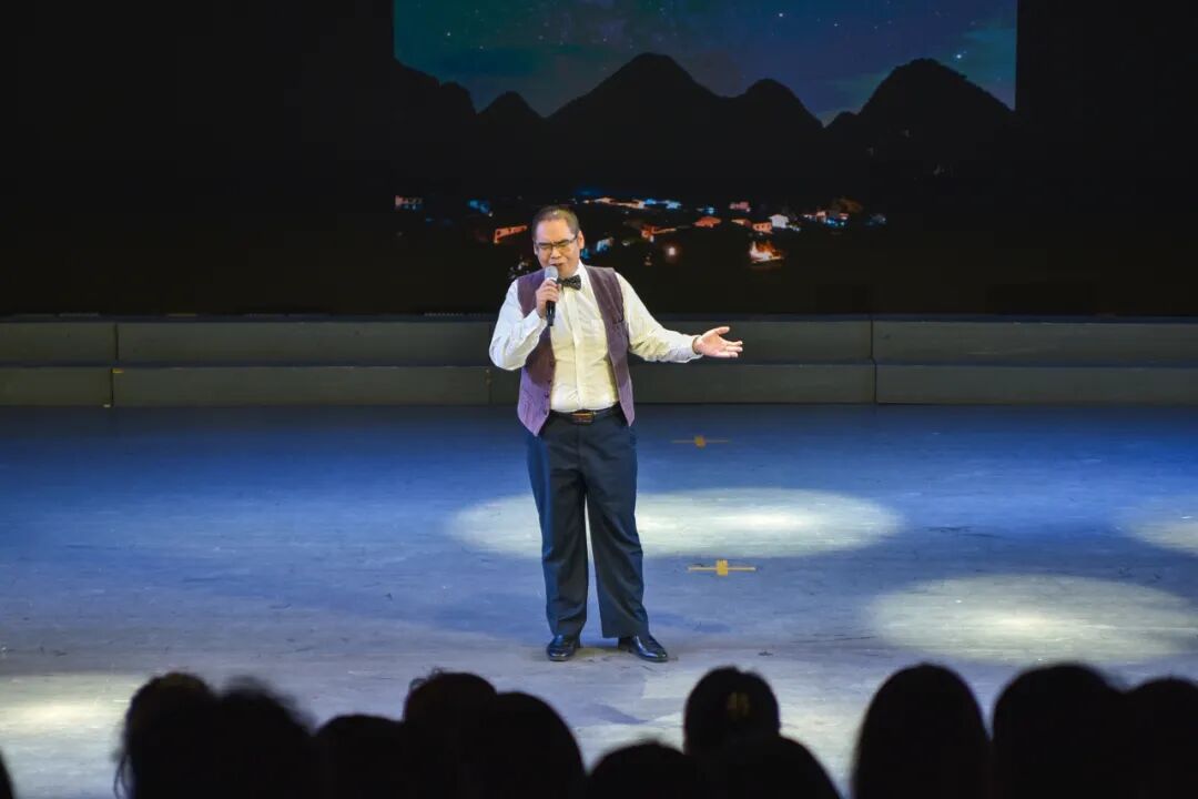 音乐会在《水墨桂林》(言筑词、李勋曲、刘海旋演唱)中拉开帷幕。作品以声乐为墨,勾勒出一幅灵秀氤氲的山水长卷,为整场演出奠定了“以声绘景”的艺术基调。