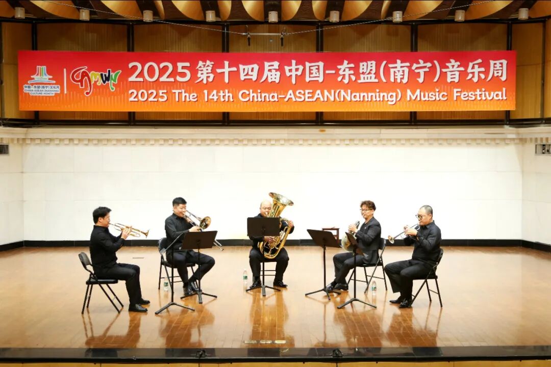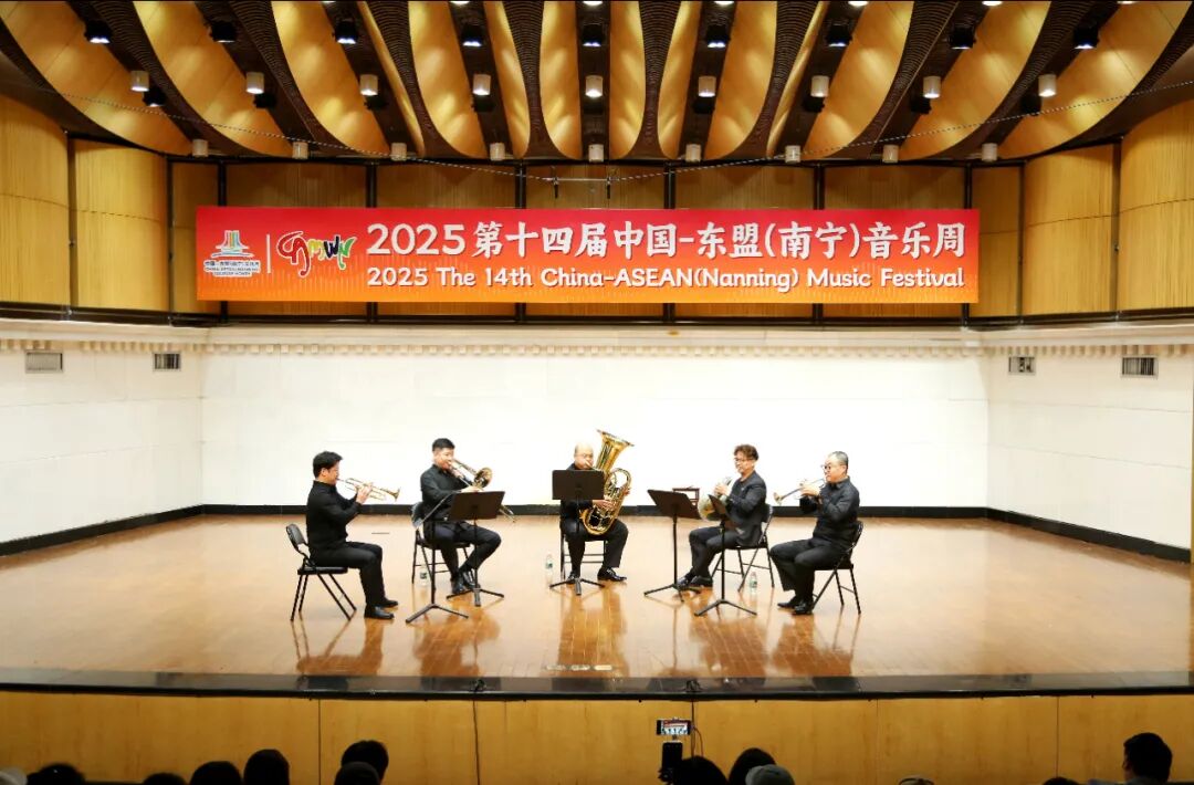 【2025 第十四届中国-东盟(南宁)音乐周】浙江音乐学院辉煌铜管五重奏专场音乐会精彩奏响 来源: 作者: 时间:2025-11-06 10:14 点击:次 字号:【小 大】 当广西山水的清音遇见江南铜管的辉煌,当音乐的桥梁连接中国与东盟——这一场音乐会,嘹亮难忘,余韵悠长。合影留念图 片|刘 帅文 字|韦淑梦编 辑|刘曼诗韵一审一校|黄娜娜二审二校|张 灿三审三校|曾娇琳 [打印正文] [返回顶部] 分享到: